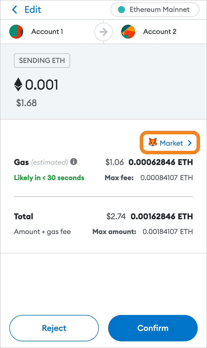 Before you confirm a transaction, there’s a custom-fee option next to the default gas shown. From there, you can manually set your price or select among three simpler modes: