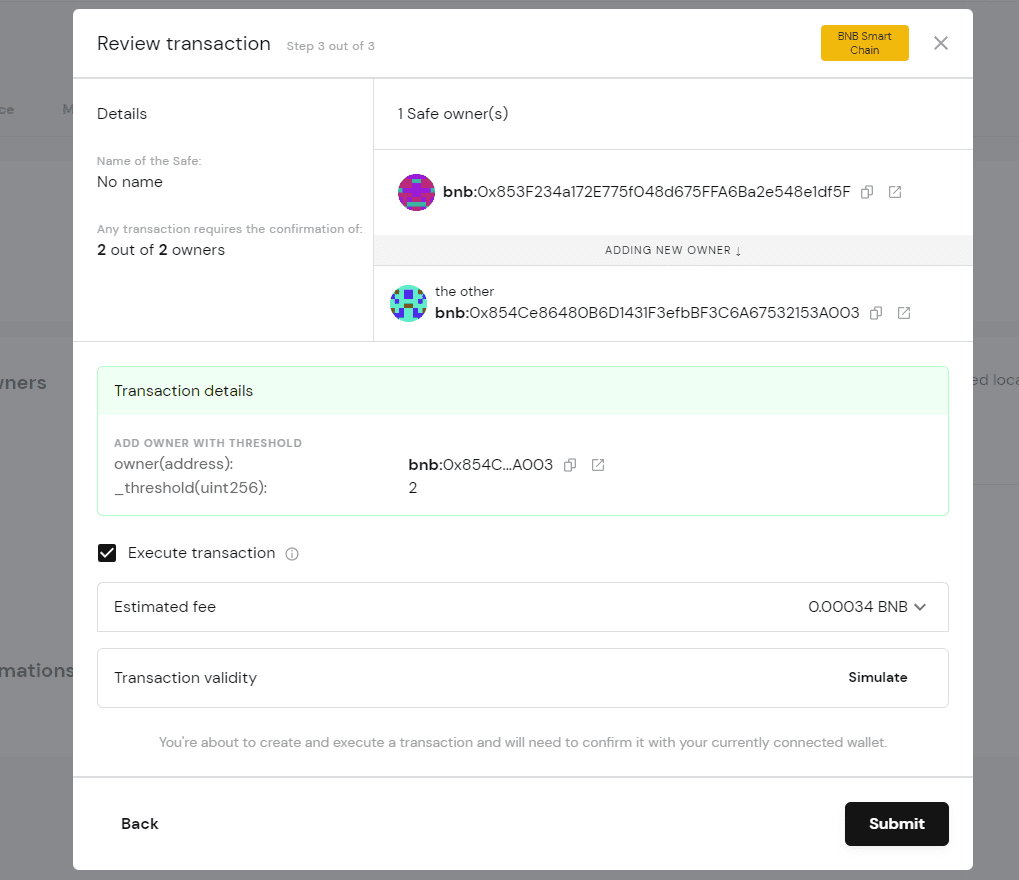 • You pay a gas fee to open a vault on your network of choice (e.g., Ethereum). The first Metamask account that created it is the owner of the Safe.