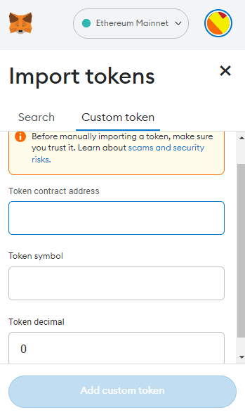 Once you find the real token contract, add the custom token:
