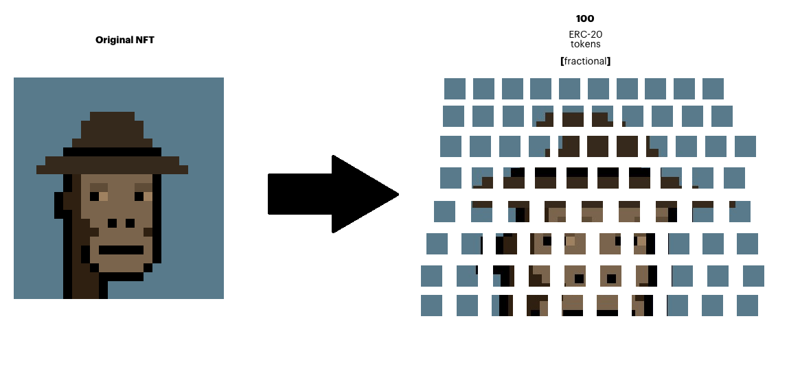 For example, you could divide one NFT into a collection of 100 fragments (sub-NFTs), each with different owners or prices. A more complex alternative could be: whoever owns over 50% keeps the ownership rights, and everyone else is just an investor.