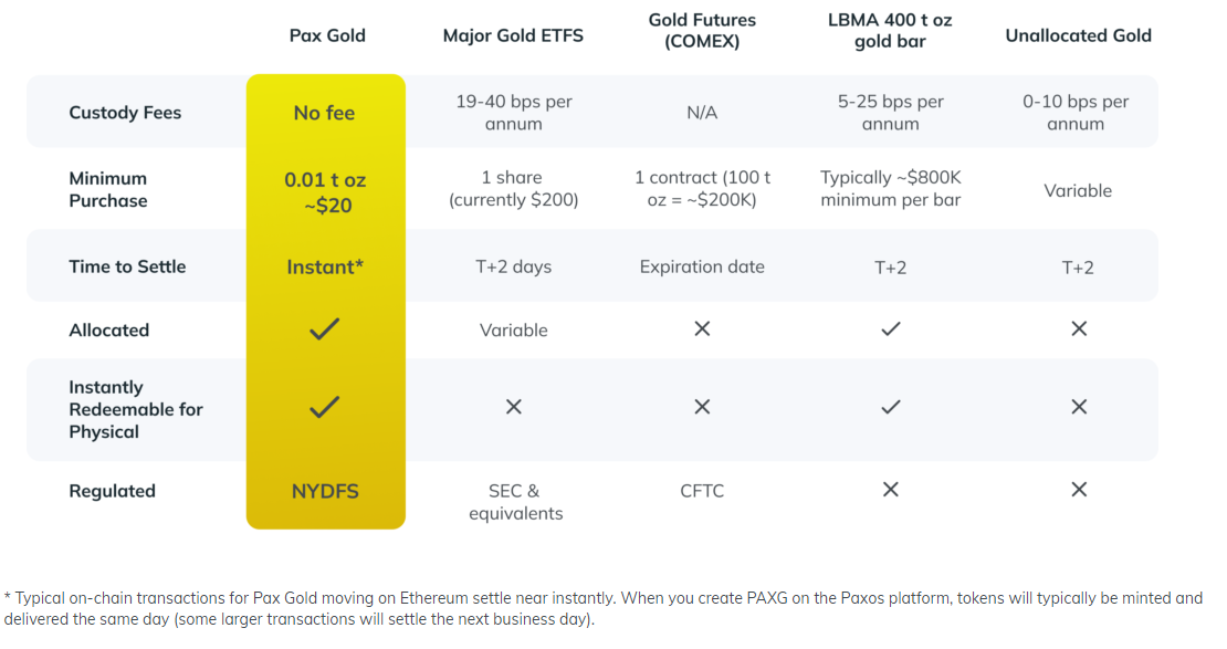 • Digital gold. For example, Paxos Gold has backed its tokens with physical gold and made them divisible.