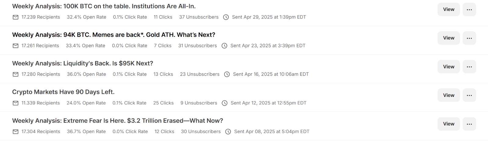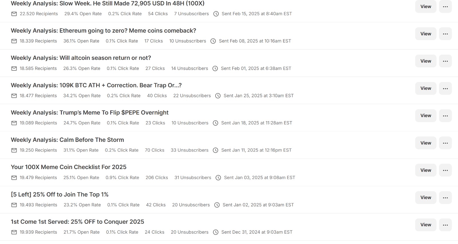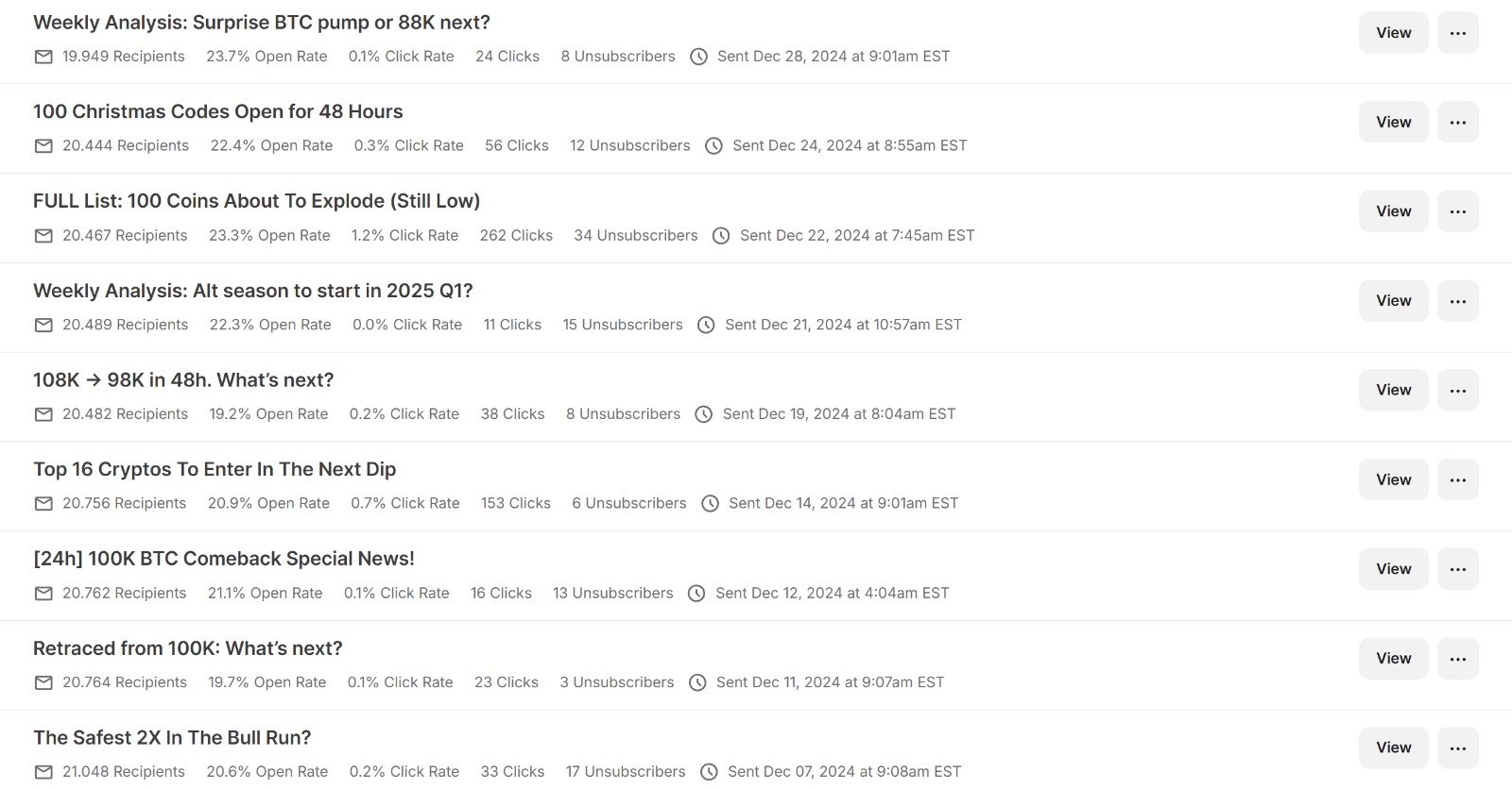 **NOTE: The actual lifetime CTR is way higher than the avg. CTR (~15%). We prioritized other channels, which kept the list size at ~22K for over 3 months, with offers unchanged, meaning the CTAs weren't reaching new leads. Hence the 0.31%. Under normal conditions, avg CTRs fall at 2-3%, which was the case of this list originally.