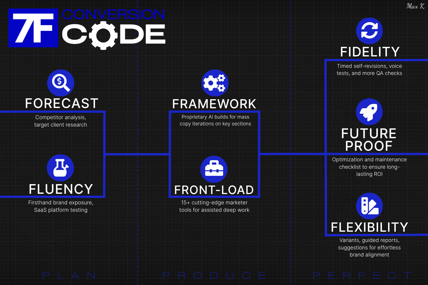 Leverage my signature copywriting system, a hybrid model involving proprietary AI logic, timeless persuasion principles, and consulting from exclusive, seven-figure mentorships.